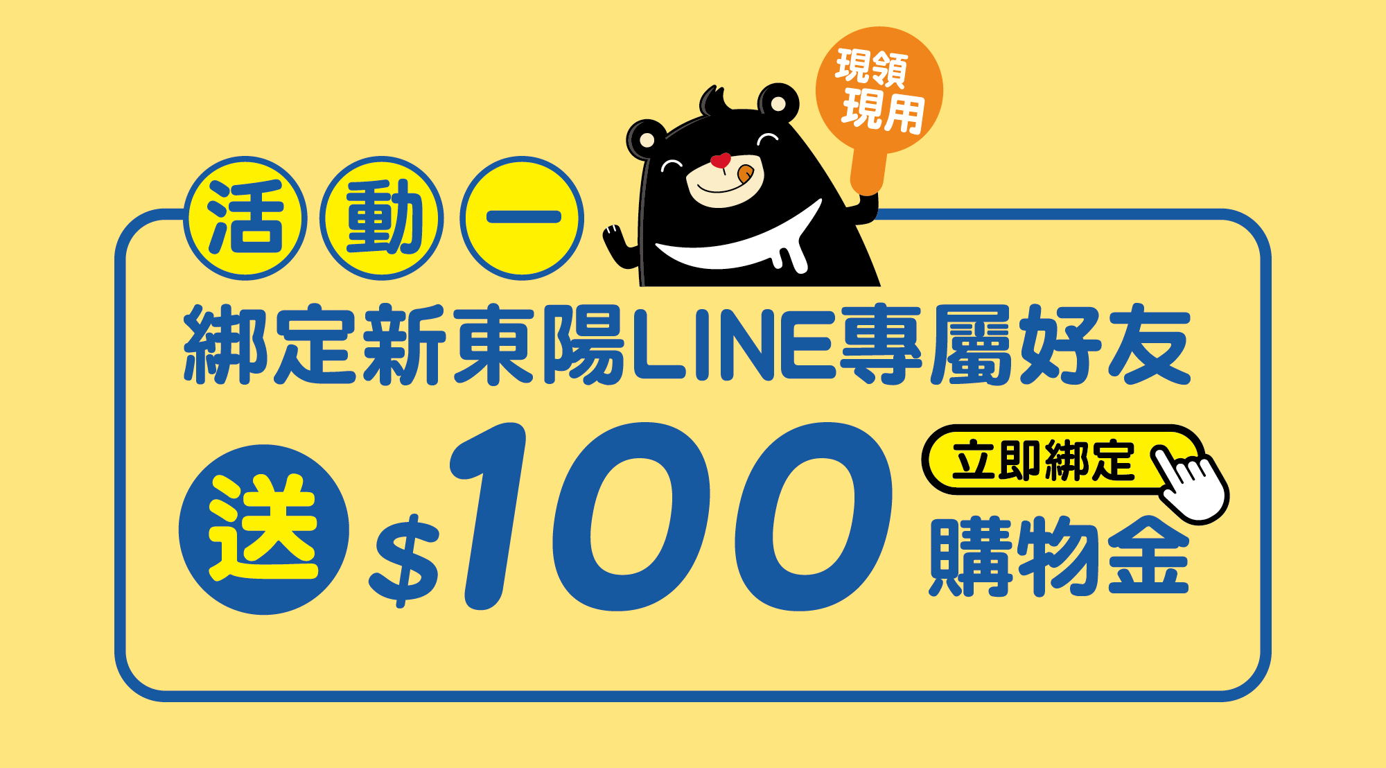 - 本活動限綁定新東陽LINE官方帳號專屬好友且未封鎖始可參加,若中獎者經查核身分不符,則取消得獎資格並另外抽獎替補。