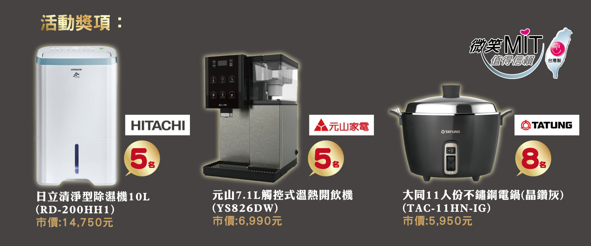 7.獎項提供全國電子商品提貨券,憑券可在全台全國電子門市提貨,如遇缺貨得兌換等值商品。
